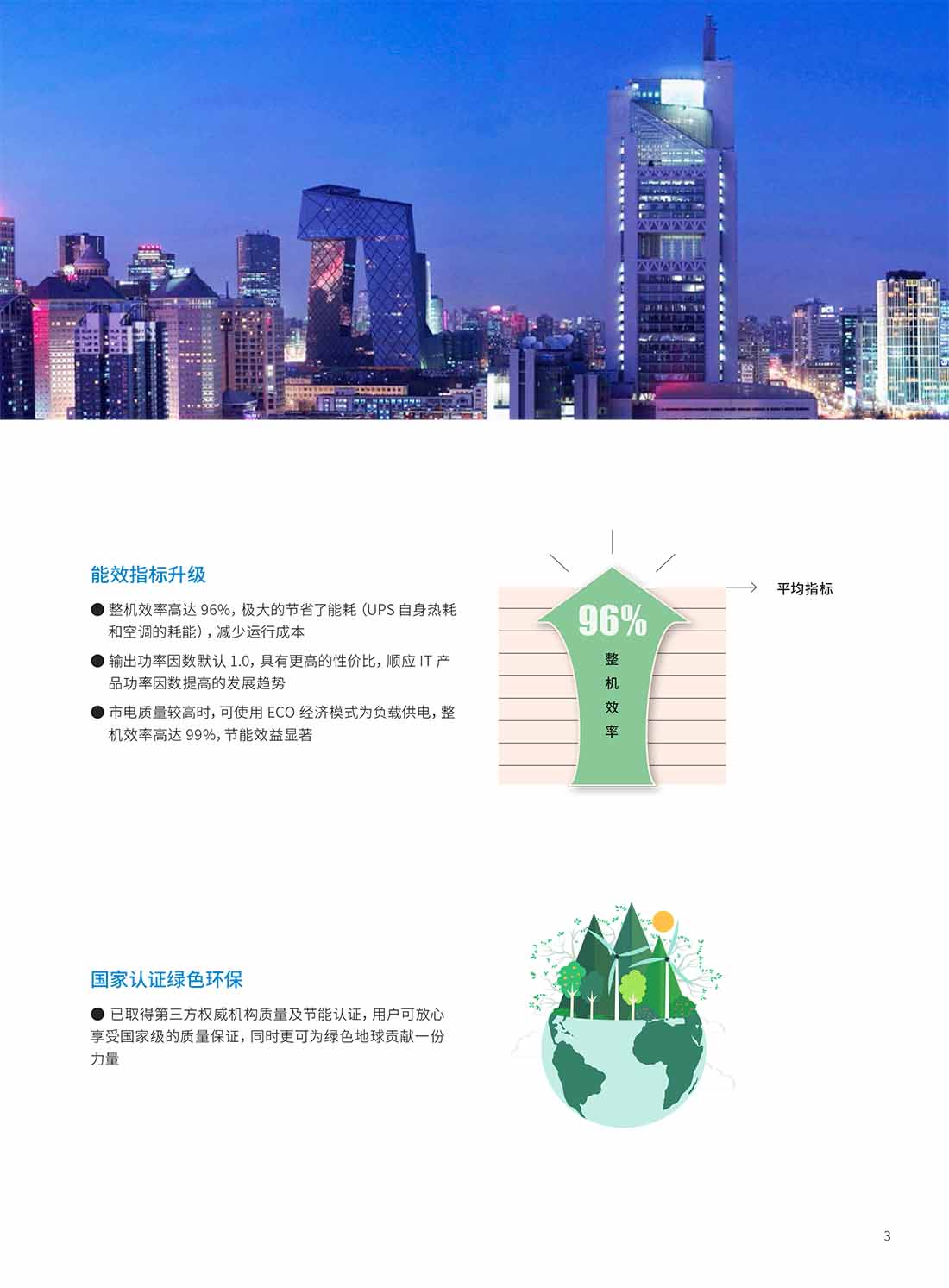 整機效率高達(dá) 96%,極大的節(jié)省了能耗(UPS 自身熱耗和空調(diào)的耗能),減少運行成本