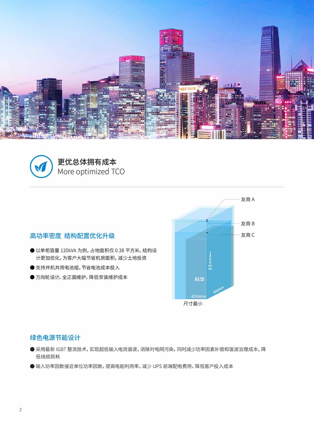 以單柜容量 120kVA 為例,占地面積僅 0.38 平方米,結(jié)構(gòu)設(shè)計更加優(yōu)化,為客戶大幅節(jié)省機房面積,減少土地投資