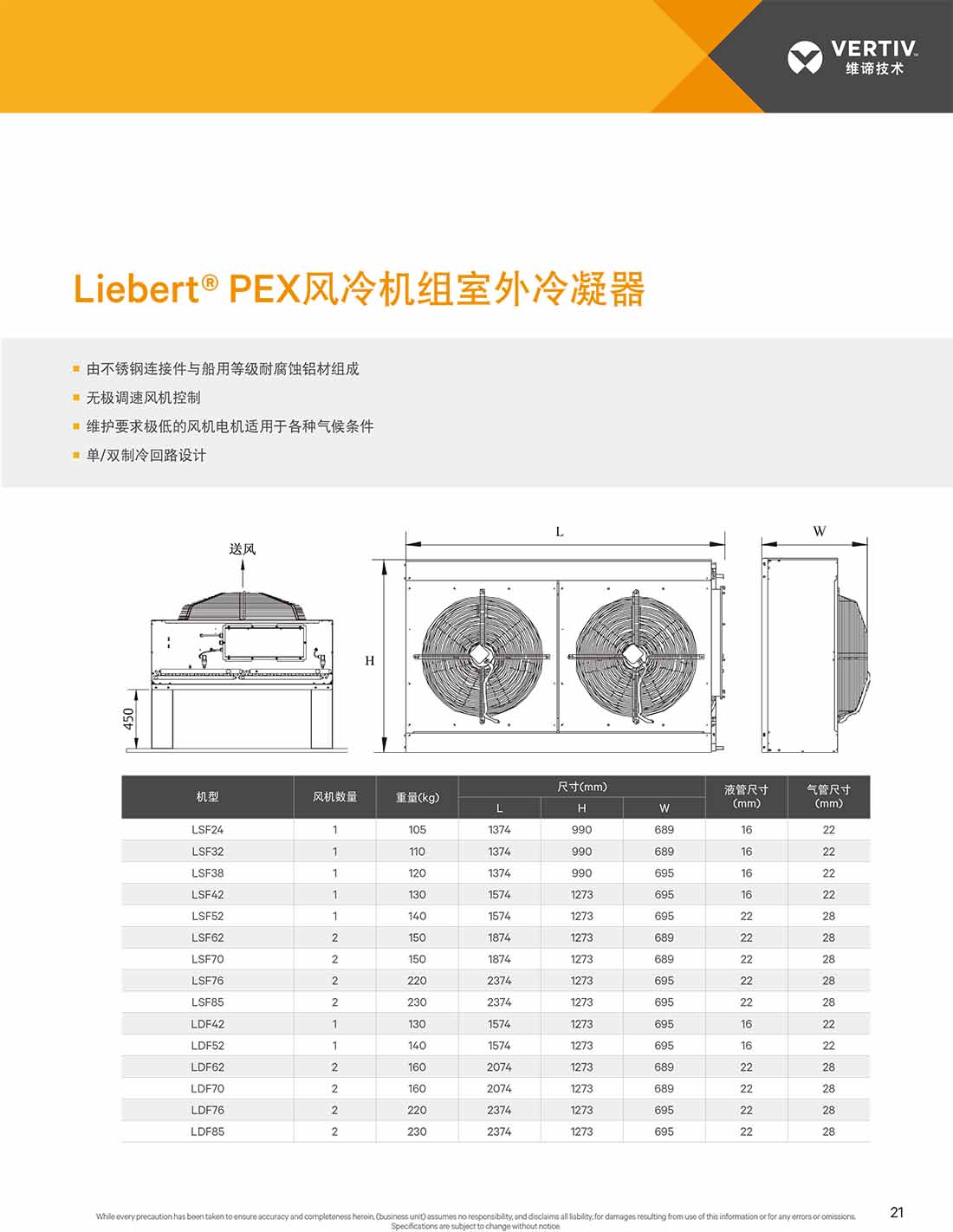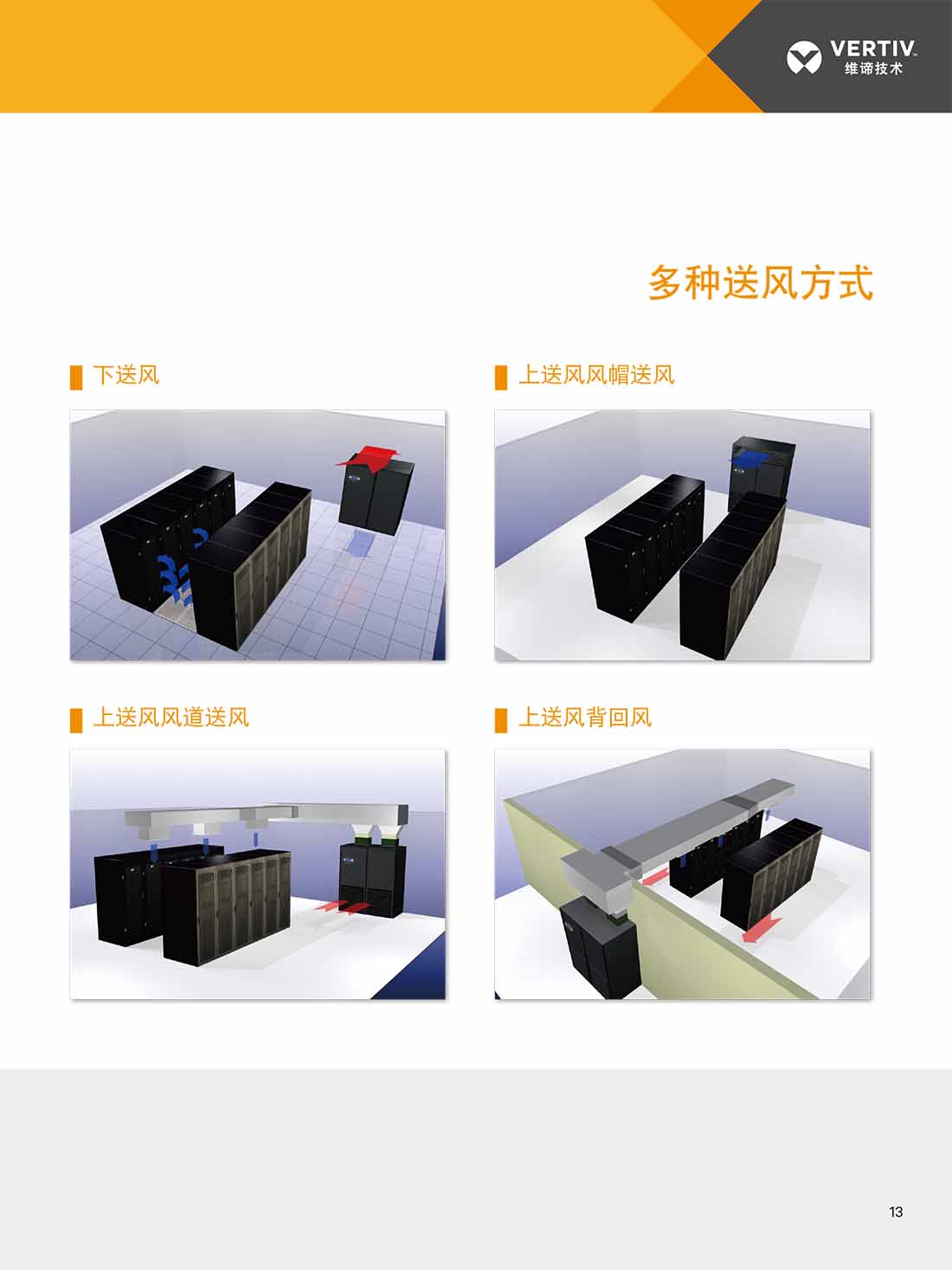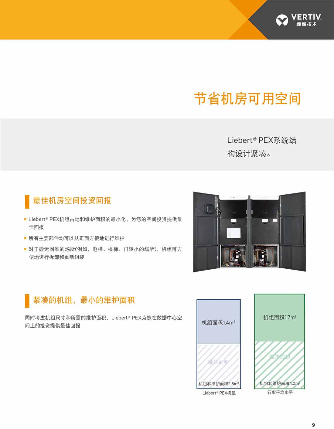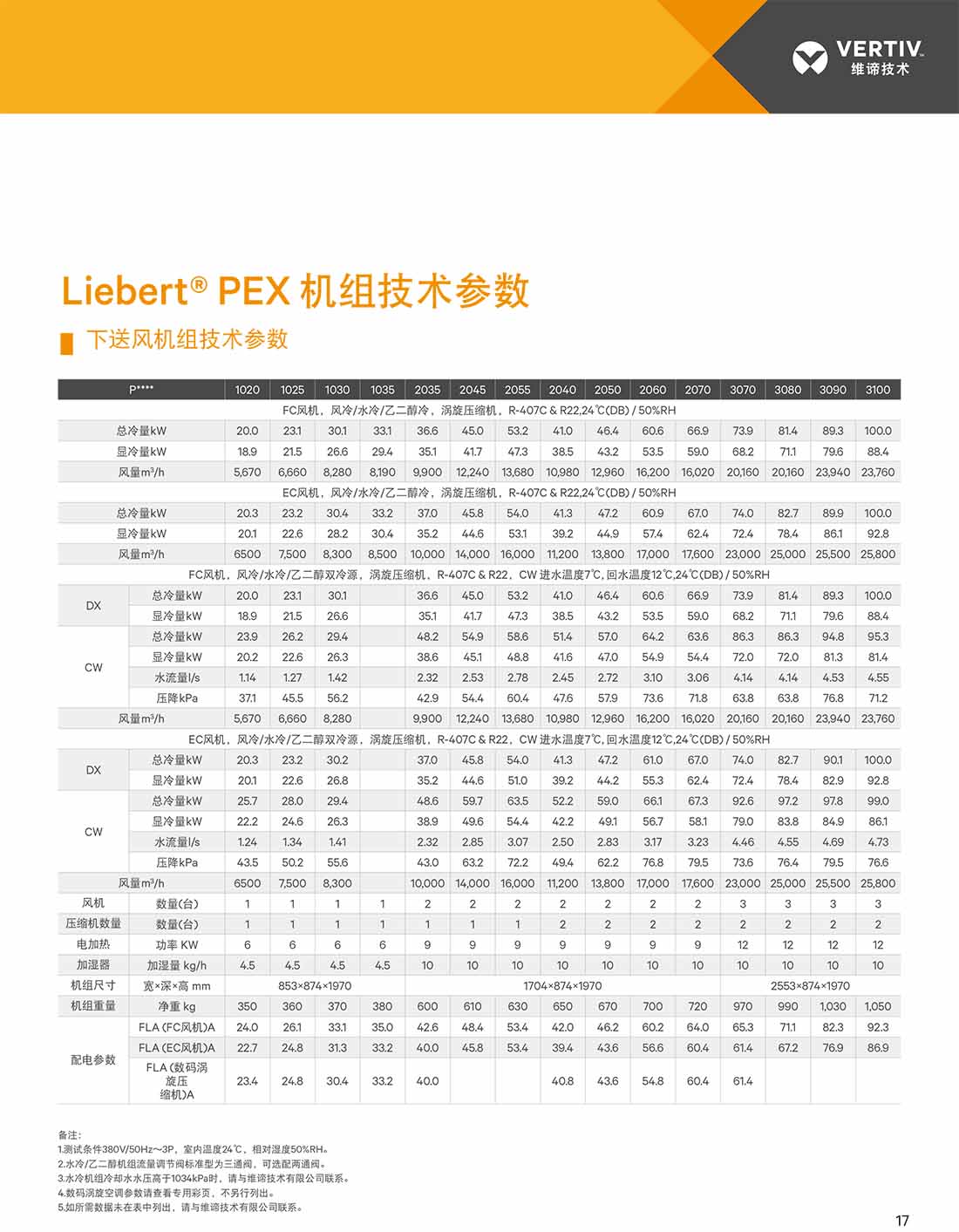 Vertiv Liebert PEX+ 機組是一款全球研發與設計的高端房間級精密空調,針對全球銷售。具有超高效、高可靠性、高靈活性;變容量制冷,優化氣流組織;模塊化設計,安裝運輸更方便。 制冷量范圍寬,風冷、水冷/乙二醇冷機組冷量范圍為:20kW~120kW;冷凍水機組冷量范圍為:30~270kW;具有上送風、下送風等多種送風模式。