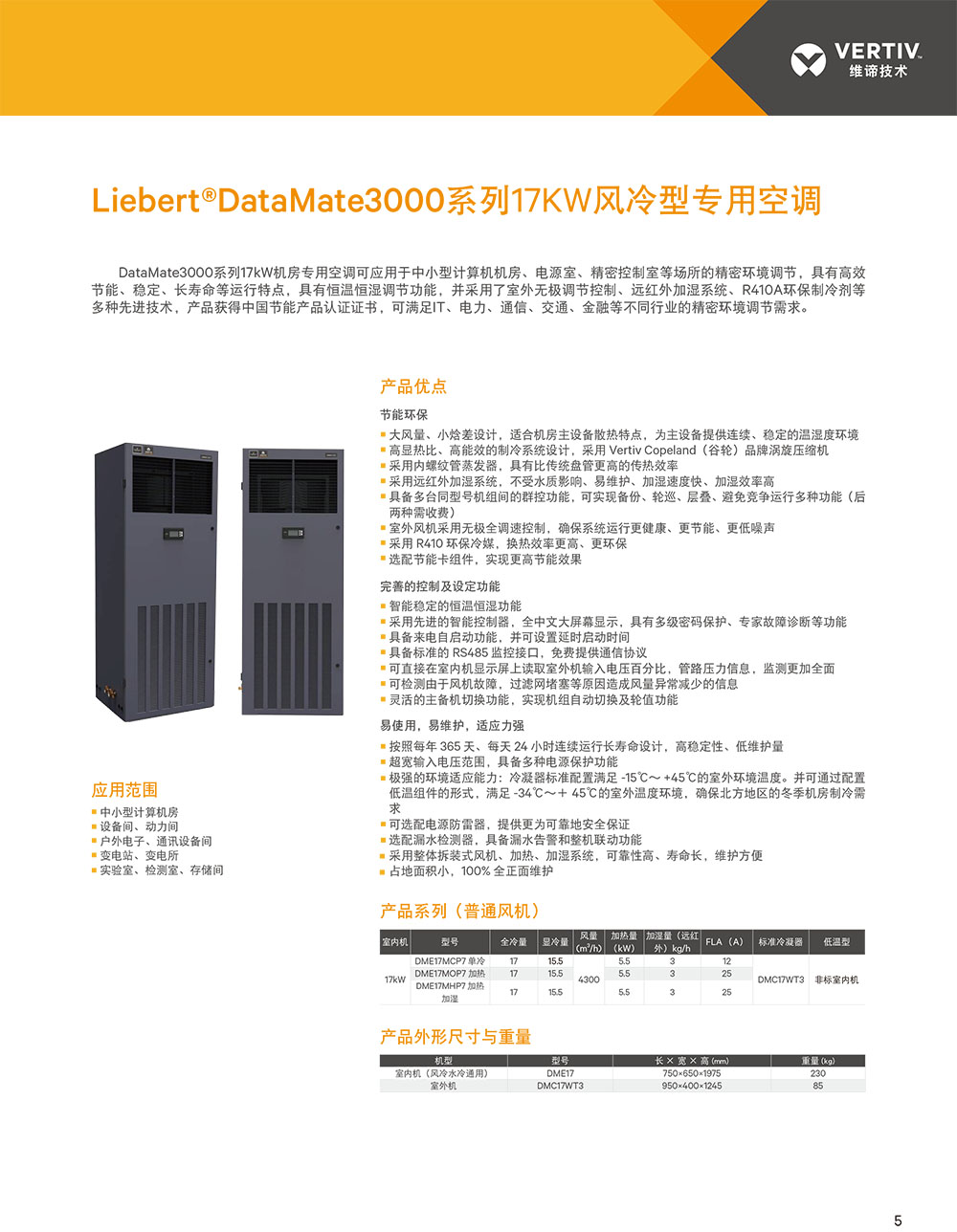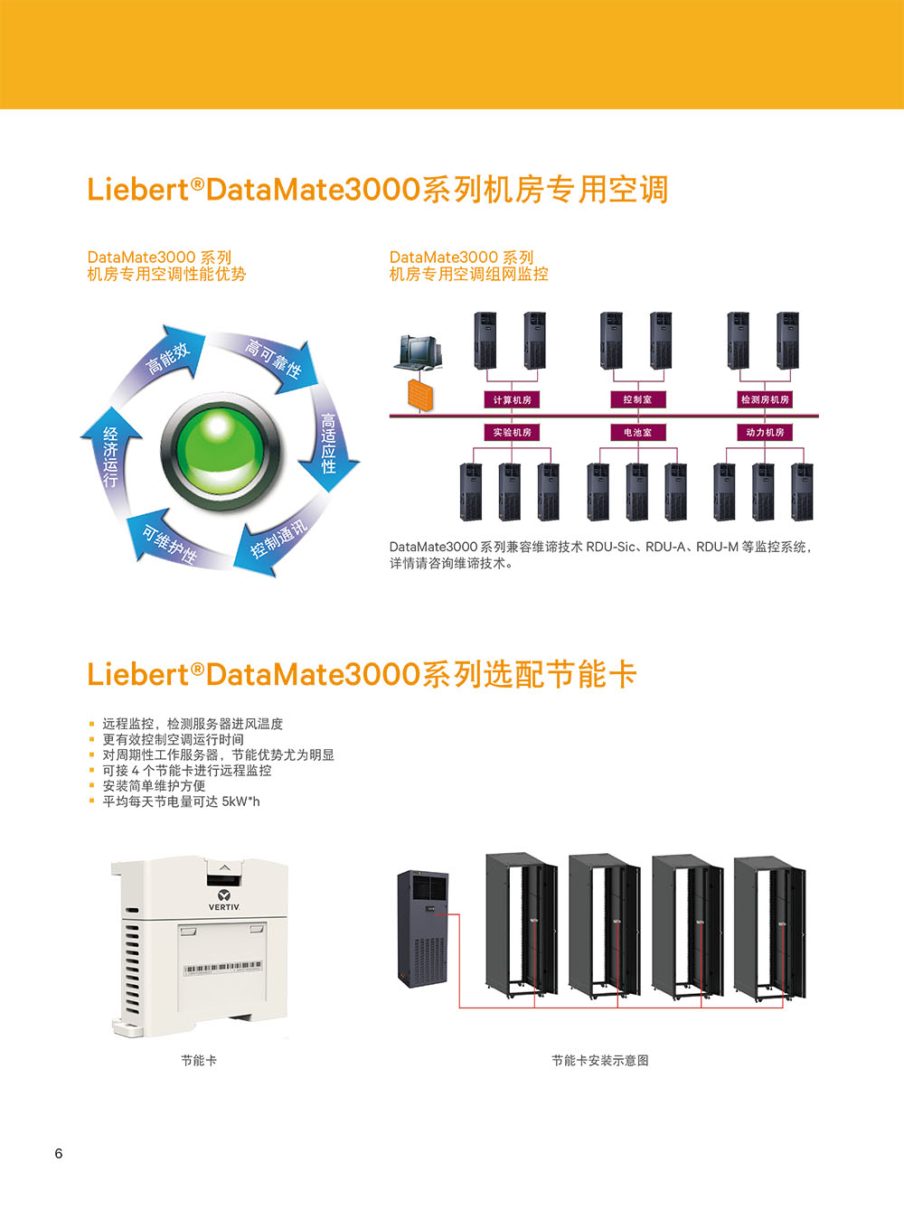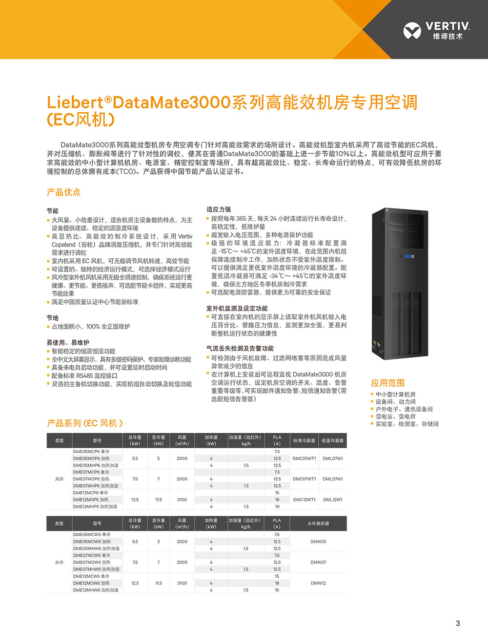 Vertiv Liebert DataMate3000 系列高能效型機房專用空調專門針對高能效需求的場所設計,比普通機房空調進一步節(jié)能10%以上。可應用于中小型計算機機房、電源室、精密控制室等場所,具有超高能效比、穩(wěn)定、長壽命運行的特點,可有效降低機房的總體擁有成本(TCO)。